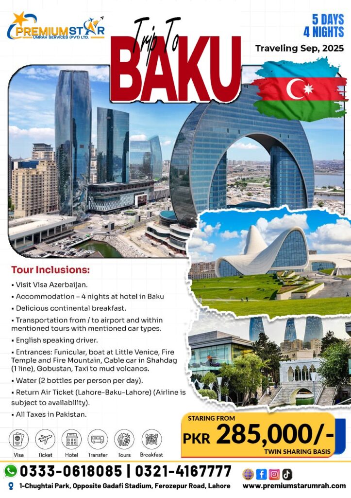 Baku, the vibrant capital of Azerbaijan, is a popular destination for travelers from Pakistan, thanks to its blend of ancient history and modern architecture.